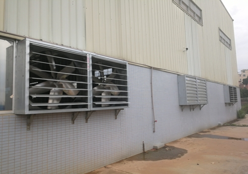 车间通风降温系统佛山湿帘作为降温介质, 水从湿帘的顶部沿湿帘的波纹表面均匀的流下,使湿帘从上到下均匀的湿润,腾煌冷风机内部的风机工作时,进行抽风,产生压力,迫使未饱和的空气流经多孔湿润湿帘表面,空气中大量的显热转化为潜热,迫使进入室内的空气从干球温度降低接近湿球温度,增加了空气的湿度,同时空气中的水份在蒸发过程中将吸收空气中的热量,使得干燥的热空气变为洁净湿润的凉爽空气,从而起到降温增湿的作用。