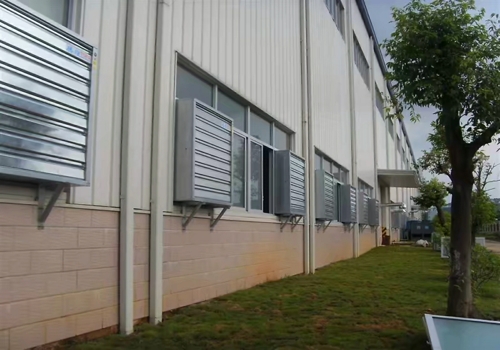 厂房车间的墙壁窗户上安装负压风机,强制把车间内大量聚集的高温闷热空气排到车间外,让车间内形成负压态势,迫使车间外的空气涌入车间内对流换气,降低车间内高温闷热空气的含量,提高车间内空气流通的速度,此方法适合本来空气流通不畅,整体车间都有高温闷热情况需要解决的车间。厂房车间降温通风,腾煌节能环保空调,对车间外空气降温后送入车间内降温。