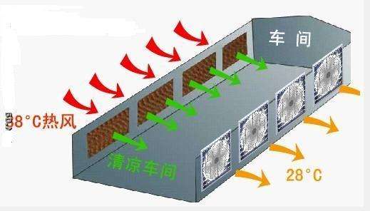 2.降温水帘系统,对车间外空气二次制冷进入车间降温。车间安装负压风机的对面或者侧面墙壁的窗户上安装降温水帘系统,东莞工业水冷降温把进入车间内的补充空气经过降温水帘二次降温,变成温度更低的空气被负压风机强行引入到车间内降温,此方法与负压风机配合使用降温,需要注意的是水帘降温系统空气的量和速度要足够补充车间内高温闷热空气排出的量和速度,而且要做好车间的密封,尽量保证进入车间的空气经过降温水帘系统。