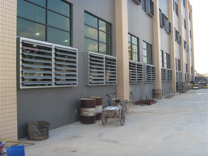 江门厂房车间负压降温通风设备 车间安装负压风机的对面或者侧面墙壁的窗户上安装降温水帘系统,把进入车间内的补充空气经过降温水帘二次降温,变成温度更低的空气被负压风机强行引入到车间内降温,此方法与负压风机配合使用降温效果最好,需要注意的是水帘降温系统空气的量和速度要足够补充车间内高温闷热空气排出的量和速度,而且要做好车间的密封,尽量保证进入车间的空气经过降温水帘系统。