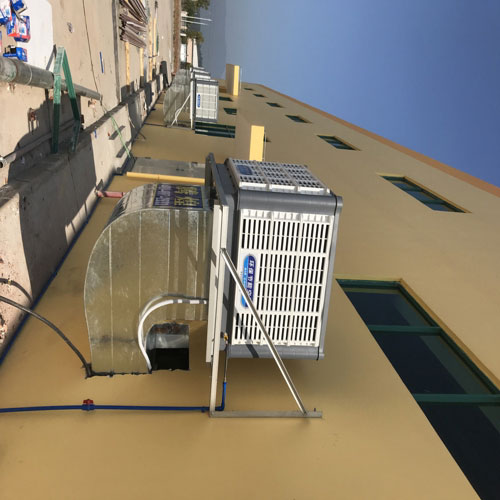 江门风机湿帘厂房排风扇是利用空气对流、负压换气的原理设计而成。安装在通风不良的地方,能够全面性的将厂房内停滞不动的热气、异味、乌烟,粉尘等气体迅速排出室外,同时把室外的新鲜空气和室内的进行循环交换,为车间不断提供新鲜干净的空气,增加空气含氧量。工厂防暑降温通风设备,改善了恶劣的作业环境,保护了员工的身体健康,从而有利于提高工作效率。