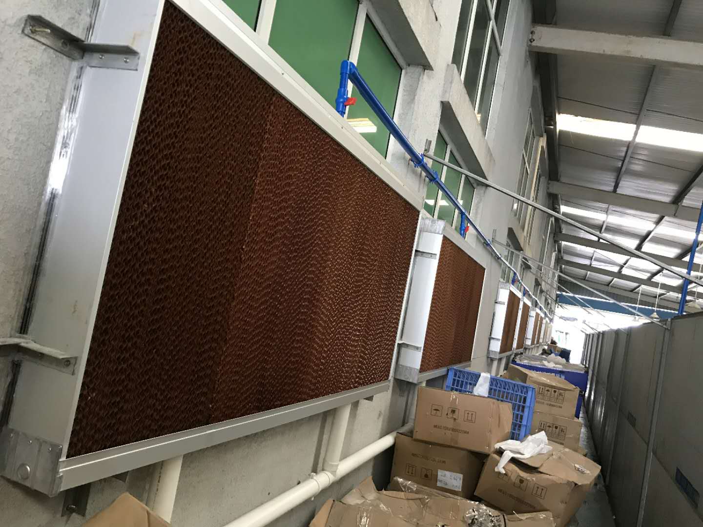 广州通风降温负压风机主要是利用空气对流,负压换气的降温原理,由安装地点的对向大门或窗户自然吸入新鲜空气,将室内闷热气体迅速强制排出室外.而水帘风机降温系统是由纸质多孔湿帘、水循环系统、风扇组成。未饱和的空气流经多孔、湿润的湿帘表面时,大量水分蒸发,空气中由温度体现的显热转化为蒸发潜热,从而降低空气自身的温度。风扇抽风时将经过湿帘降温的冷空气源源不断的引入室内,从而达到降温效果。