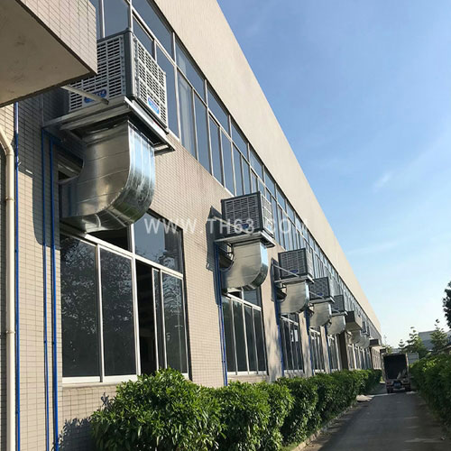 工业环保水冷空调厂房排风扇是利用空气对流、负压换气的原理设计而成。安装在通风不良的地方,能够全面性的将厂房内停滞不动的热气、异味、乌烟,粉尘等气体迅速排出室外,同时把室外的新鲜空气和室内的进行循环交换,为车间不断提供新鲜干净的空气,增加空气含氧量。改善了恶劣的作业环境,保护了员工的身体健康,从而有利于提高工作效率。